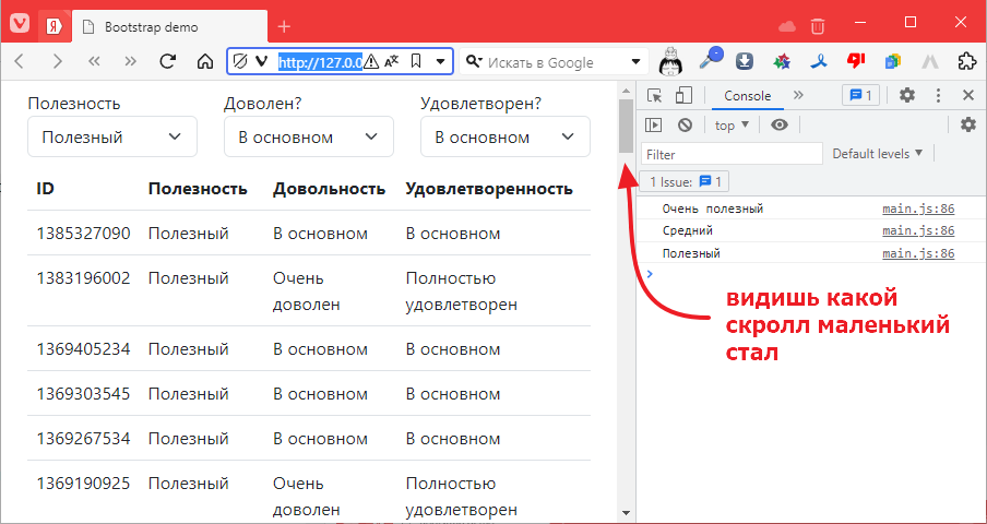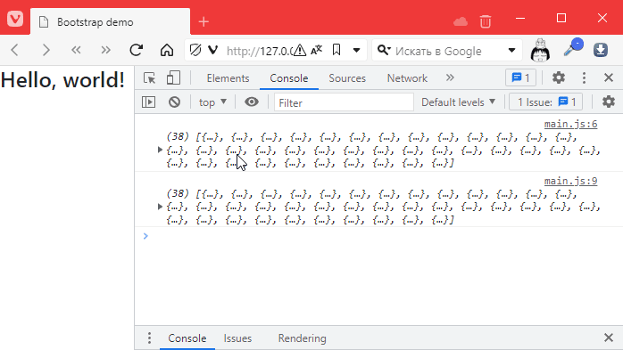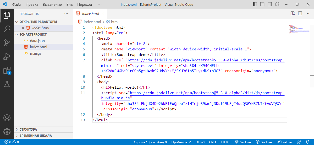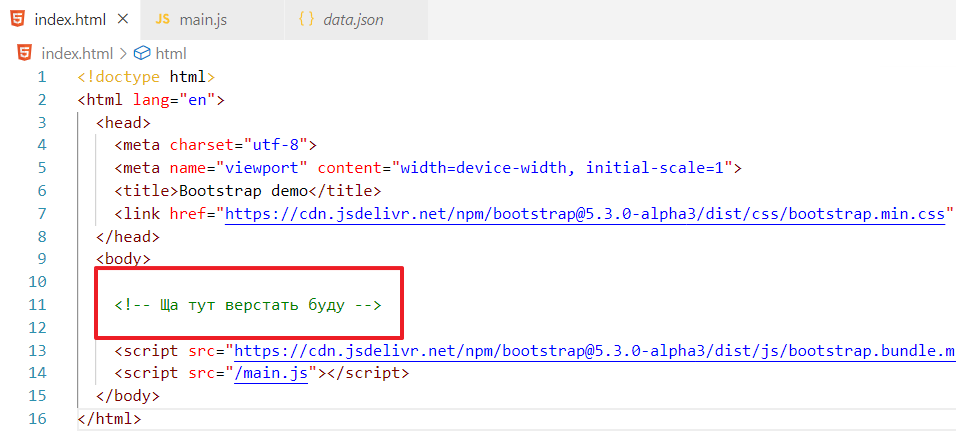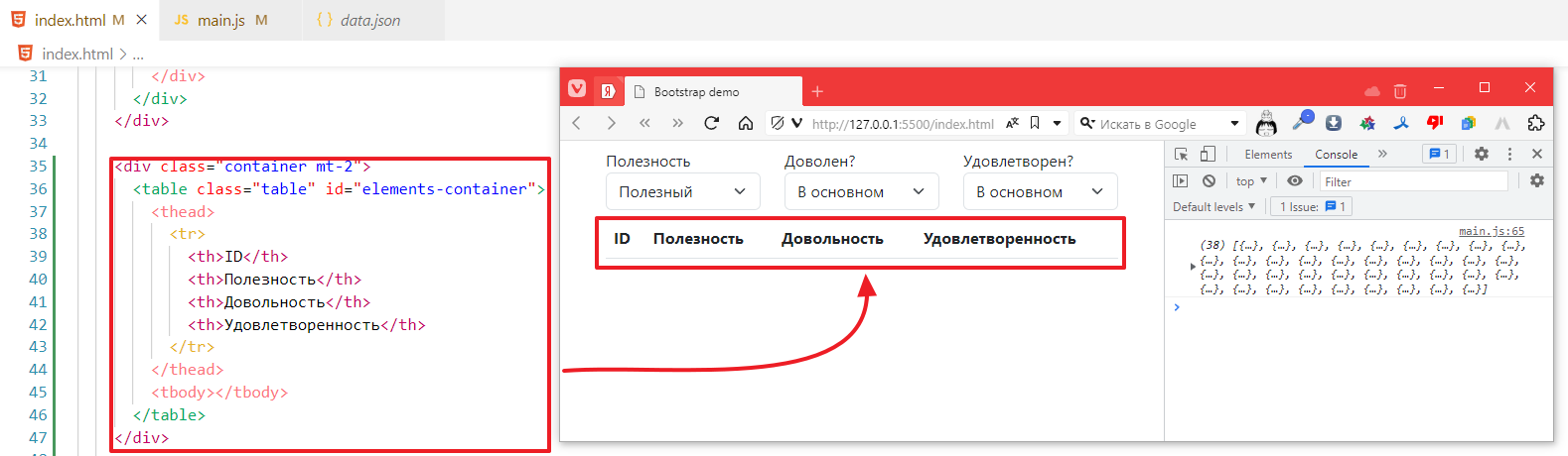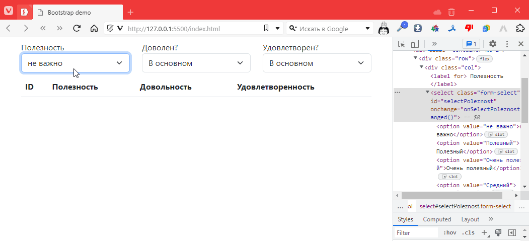теперь в файлике index.html, создадим таблицу под элементы списка. Я буду использовать табличку https://getbootstrap.com/docs/5.3/components/table/