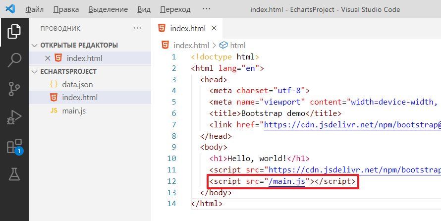 Идем в index.html и добавляем там: