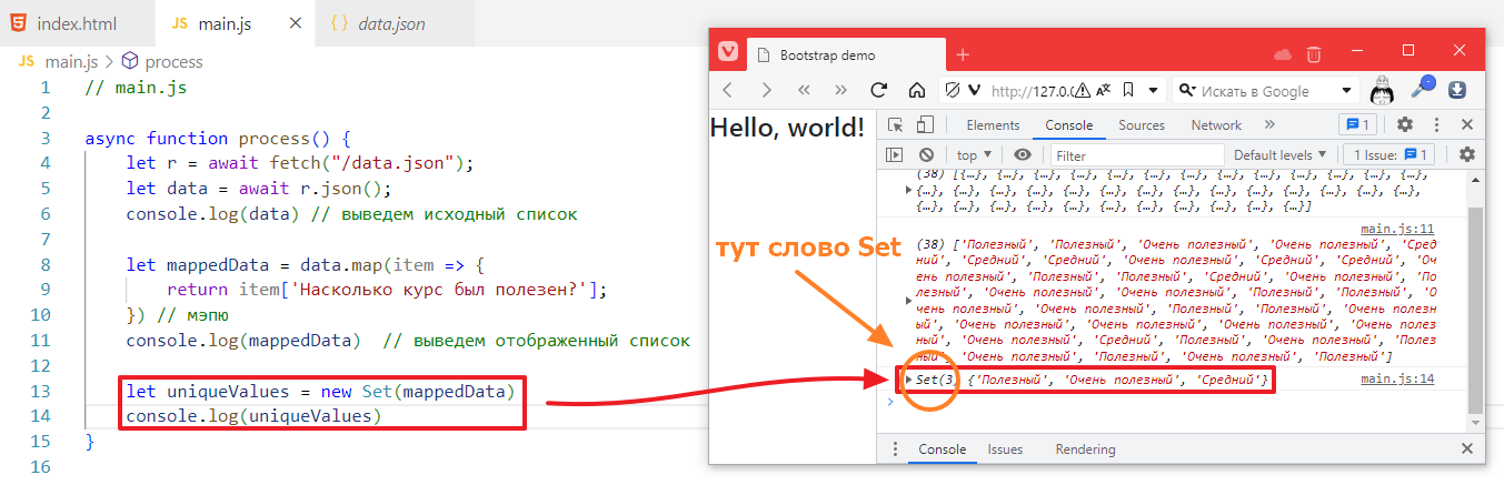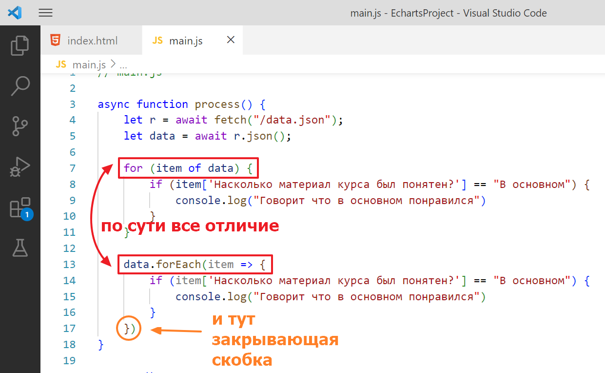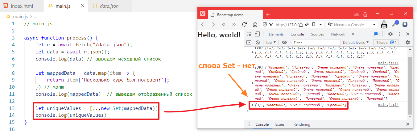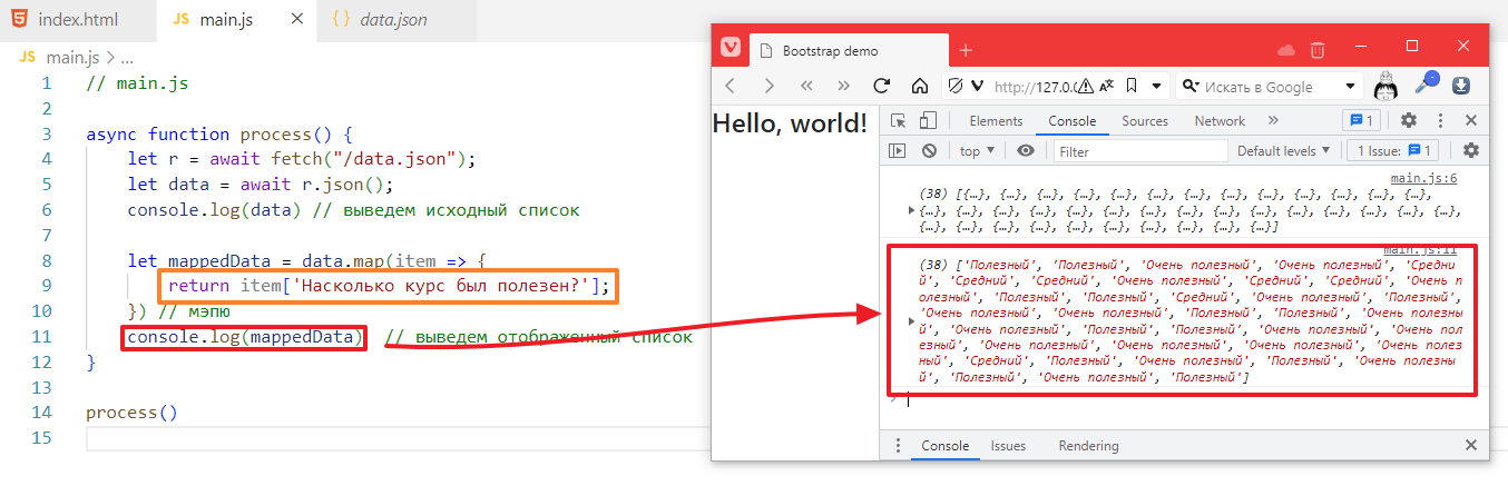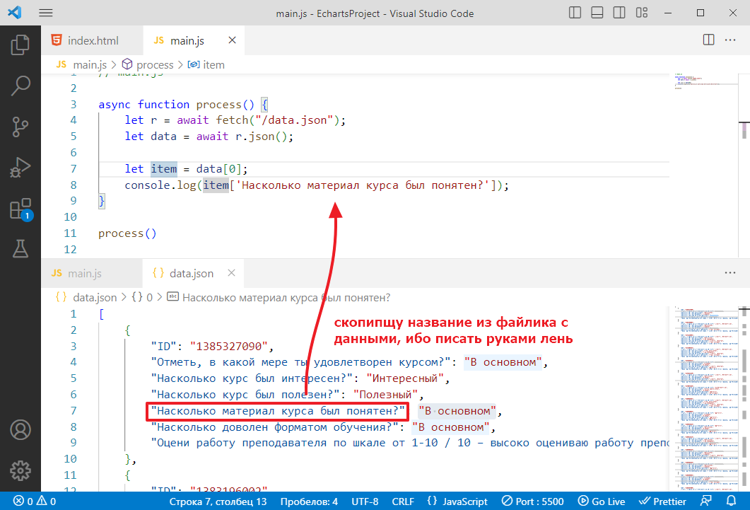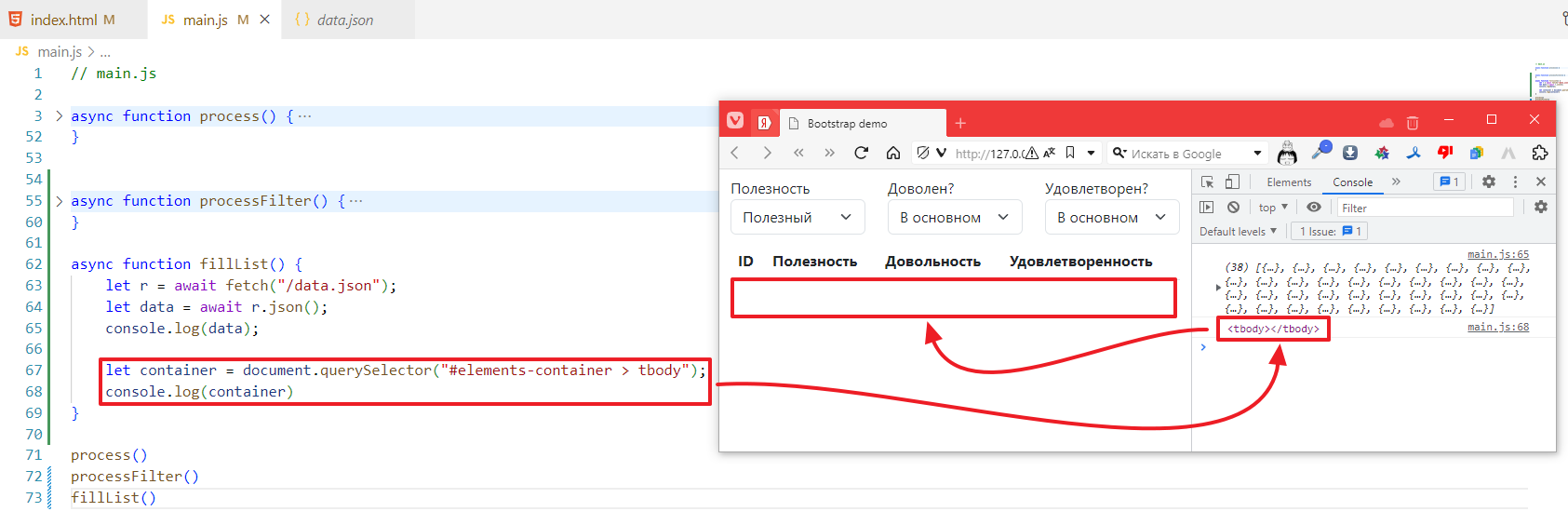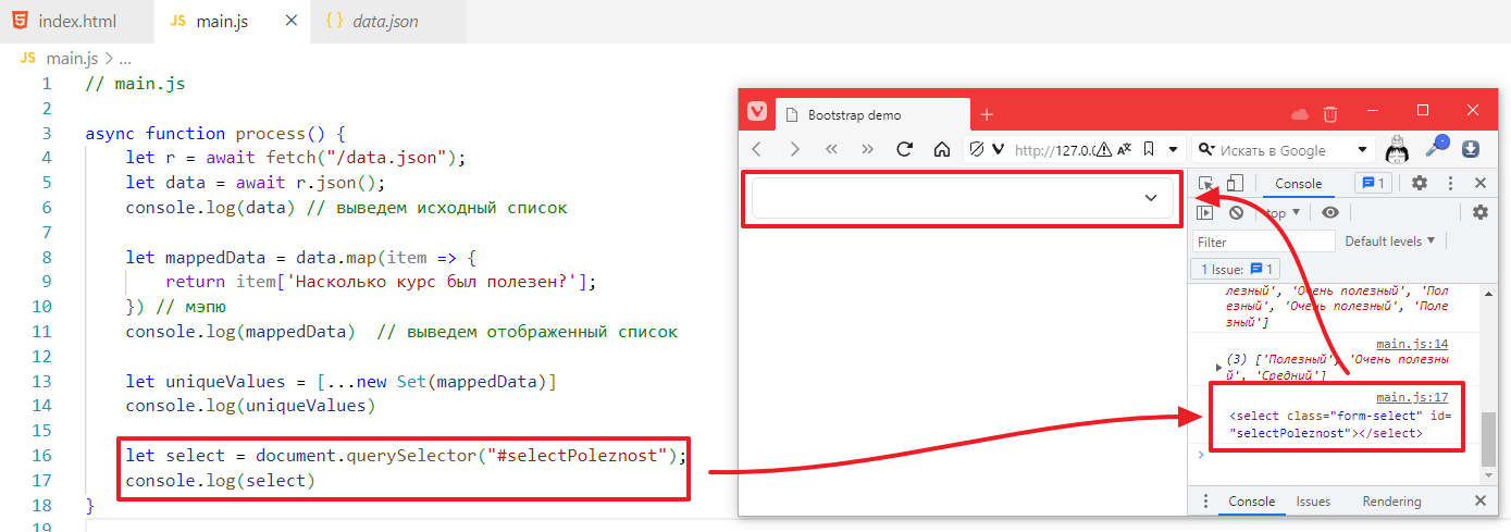 Чтобы не ломать код, которые был сделан в прошлом задании, я создам новую функцию в main.js и назову ее processFilter, запихаю в нее стягивание списка данных, вот так: