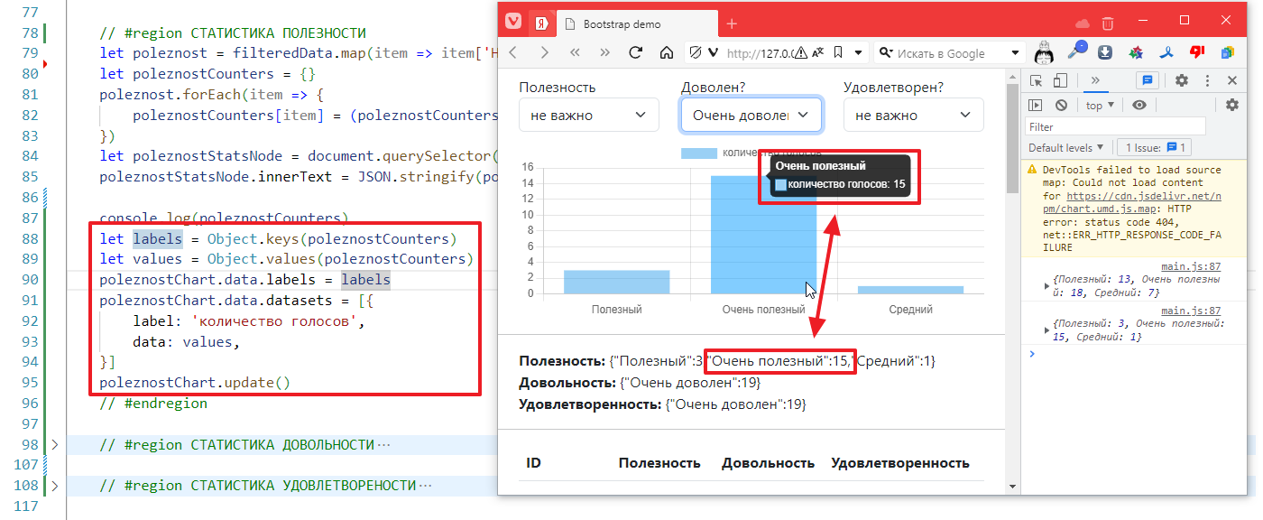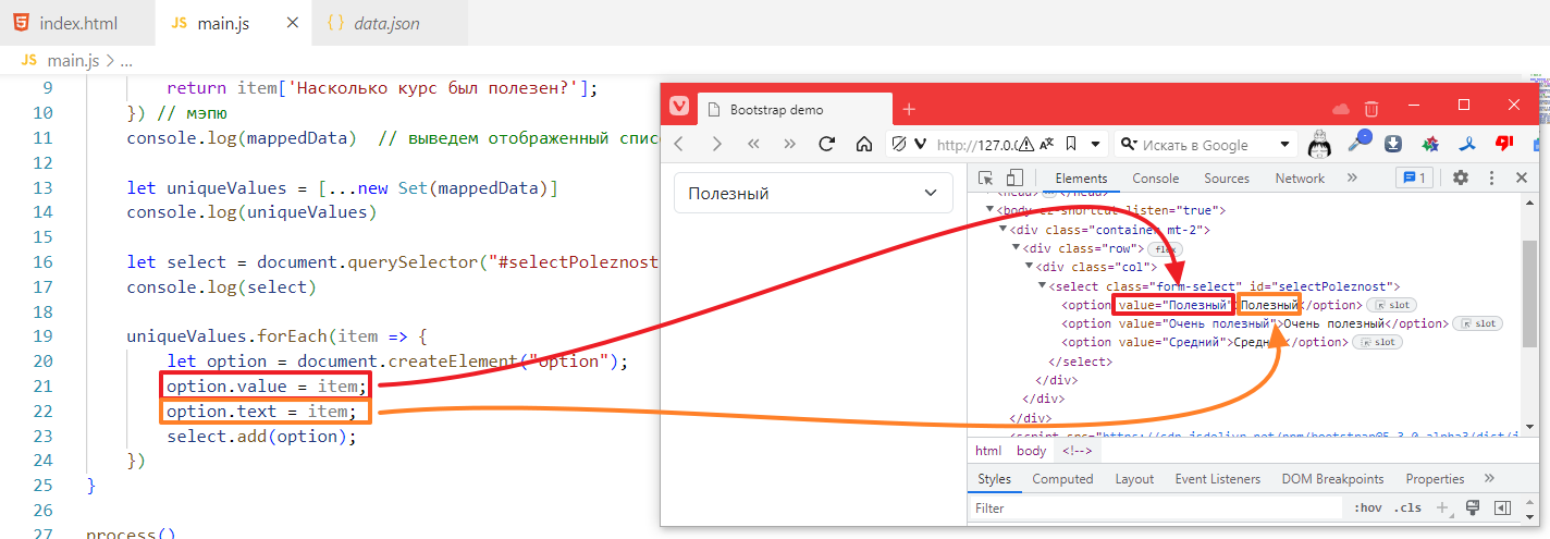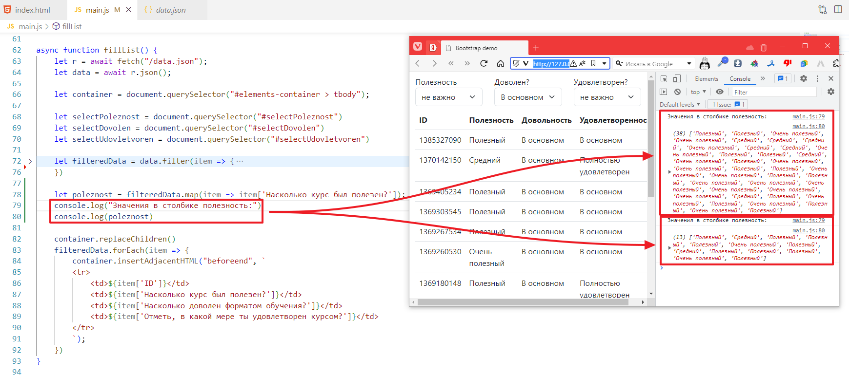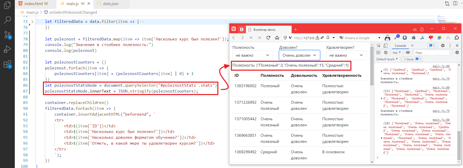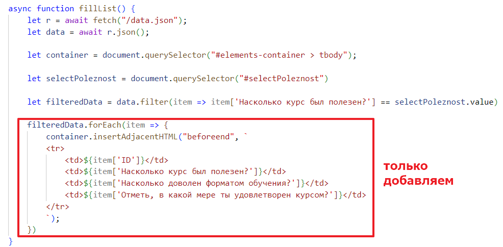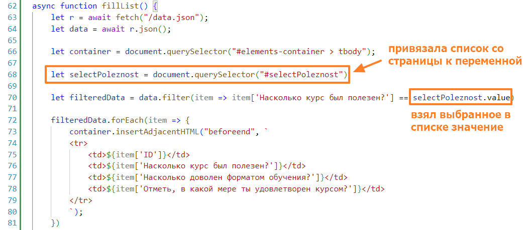 let filteredData = data.filter(item => item['Насколько курс был полезен?'] == selectPoleznost.value)