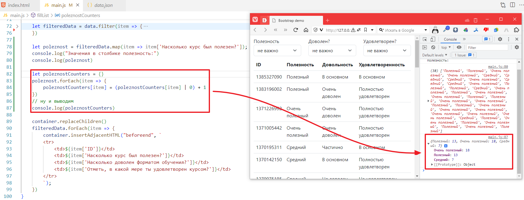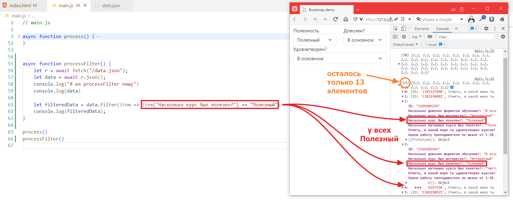 let filteredData = data.filter(item => item["Насколько курс был полезен?"] == "Полезный")