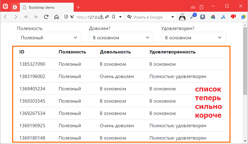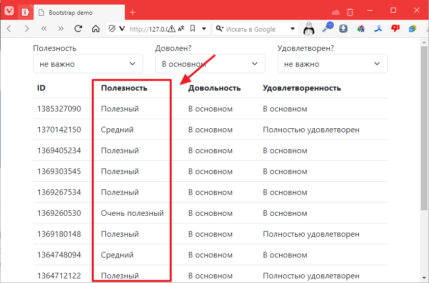 Например, оставить только те строки полезность которых была “Полезной”