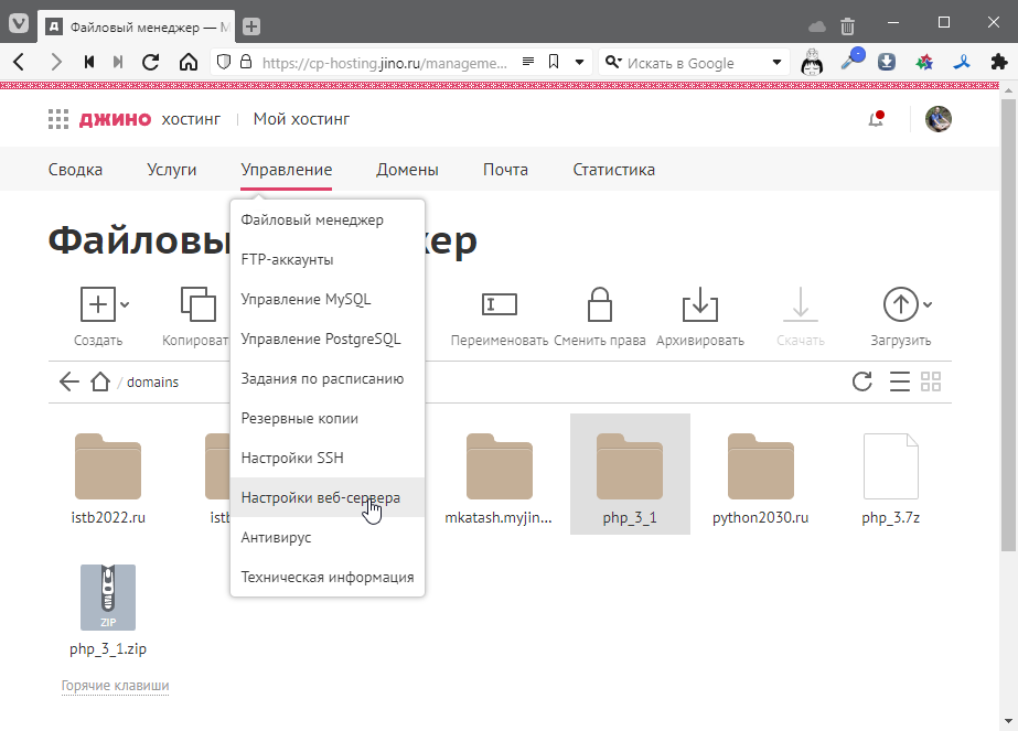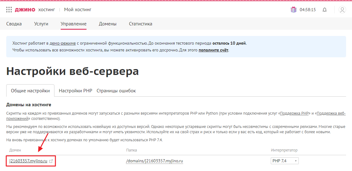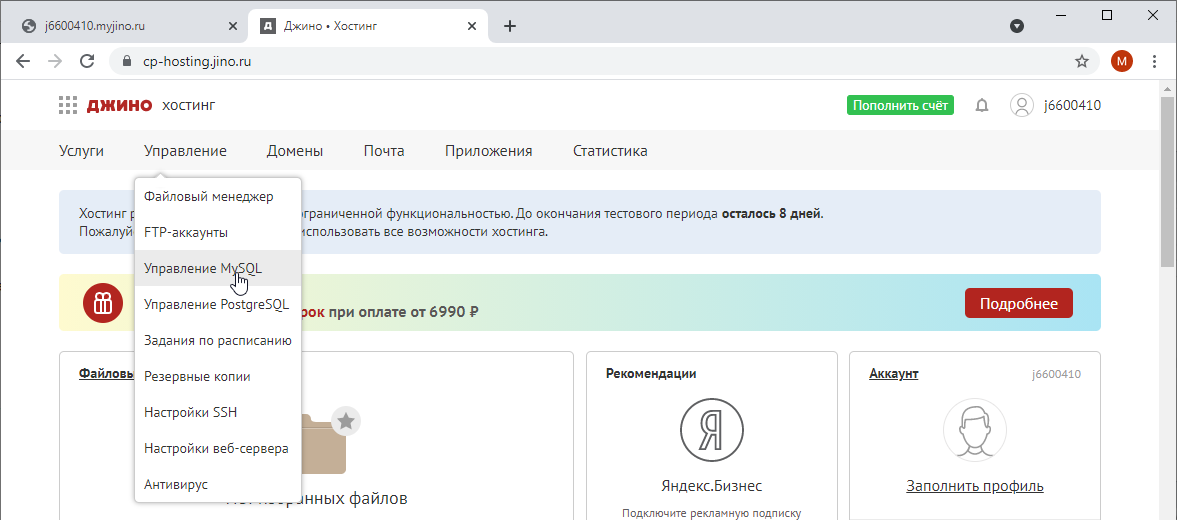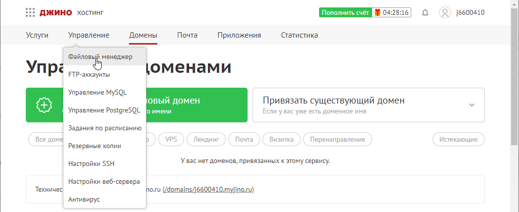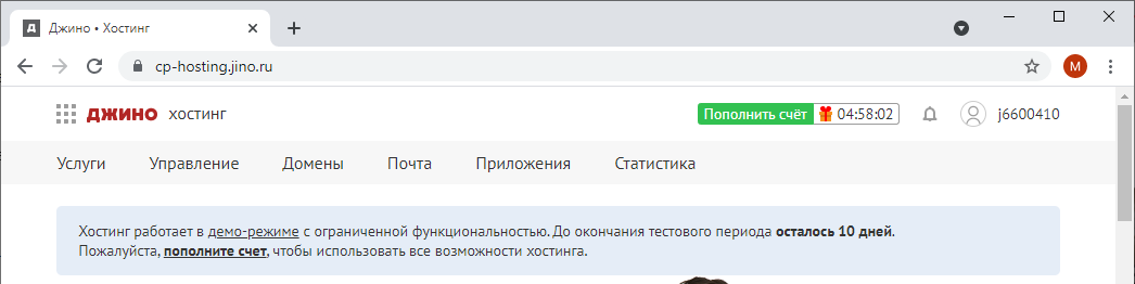Я покажу как это сделать на примере хостинга jino потому что это самый бюджетный вариант с вполне приличным функционалом.