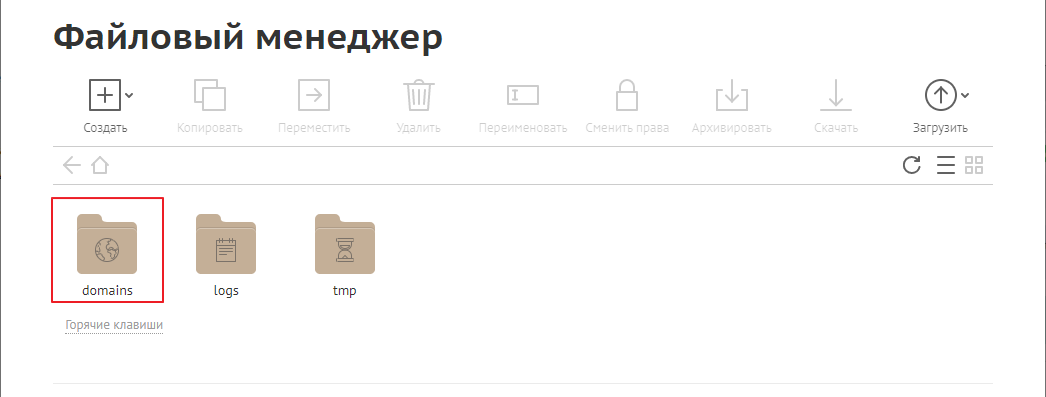 тут мы попадаем в папку на сервере куда будем загружать файлы нашего сайта. Заходим в папку domains