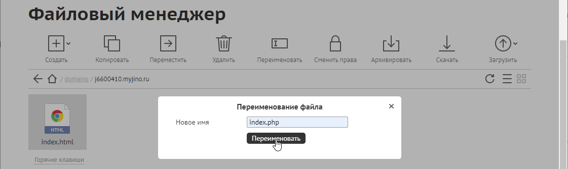 можно сразу проверить работает ли у нас php, кликаем на файлик правой кнопкой мыши и выбираем переименовать