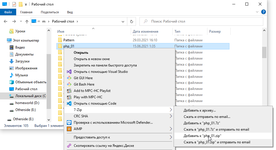 И так, первое что надо сделать это упаковать папку с приложением в zip-архив. Паковать можно чем угодно, я, например, через 7z: