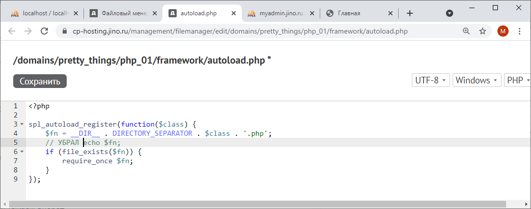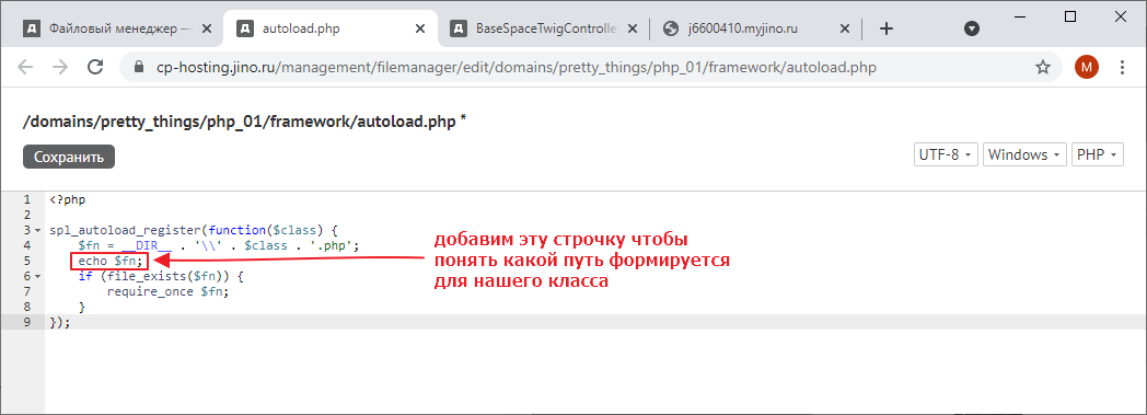 Ура! =) Только забыли убрать вывод в framework/autoload.php