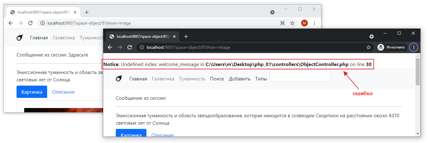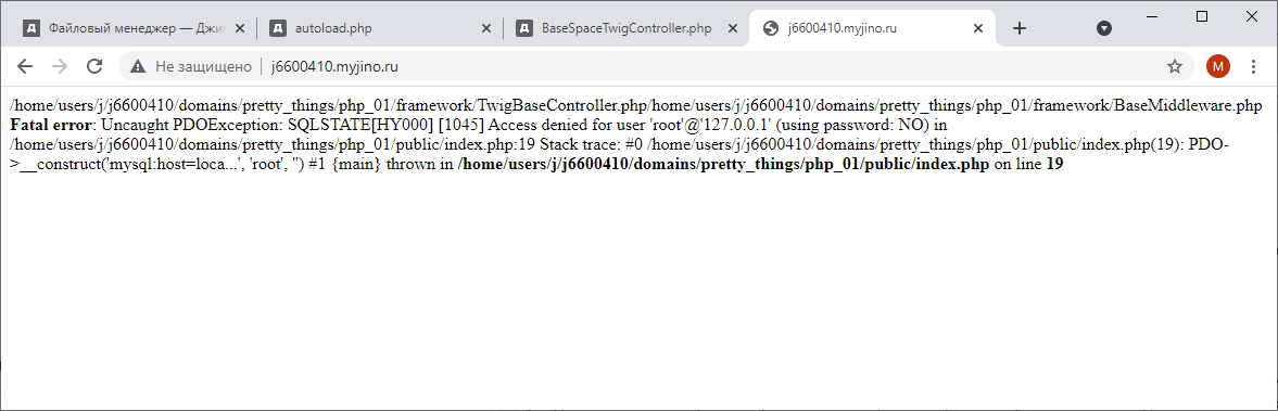 заходим на страничку нашего сайта, и видим очередную ошибку