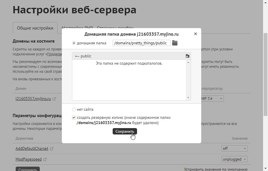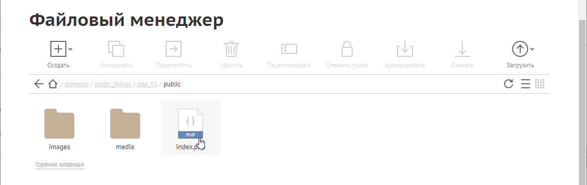Теперь можно зайти в папку. Собственно, теперь нам надо настроить технический домен чтобы он раздавал папку public из нашего проекта.