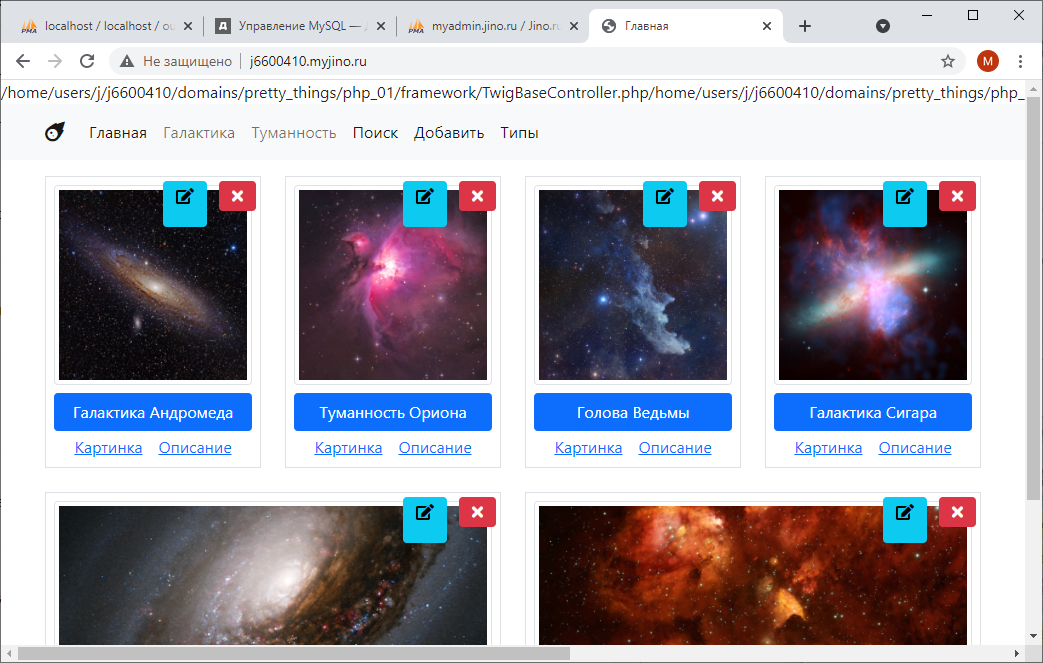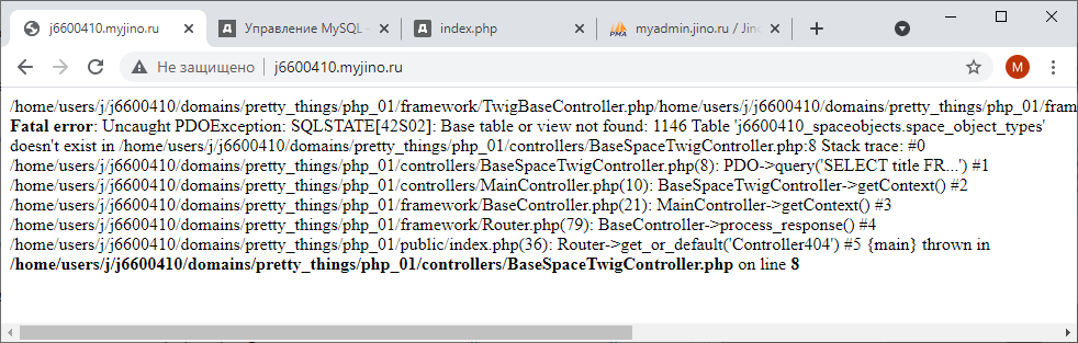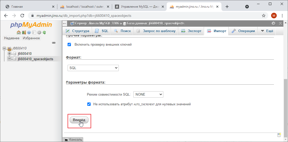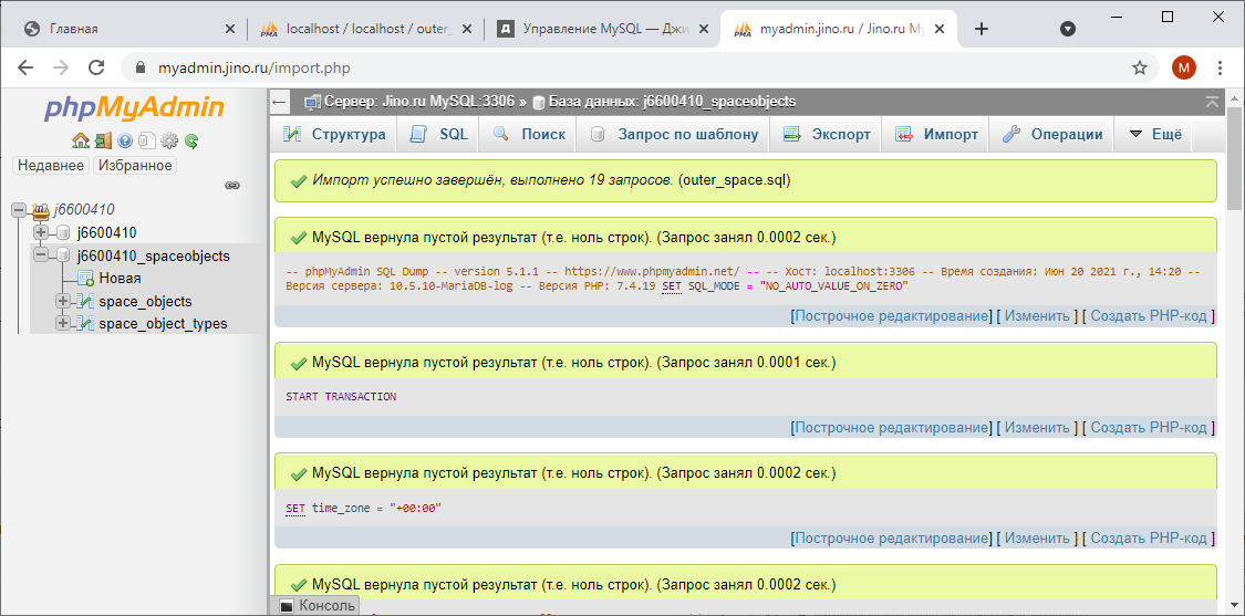 в общем теперь наша задача, зайти в phpMyAdmin на сайте jino и загнать туда этот скрипт.