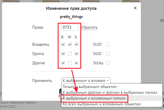 Надо настроить ей и всем вложенным папкам права. Нажмите на нее правой кнопкой и выбирете